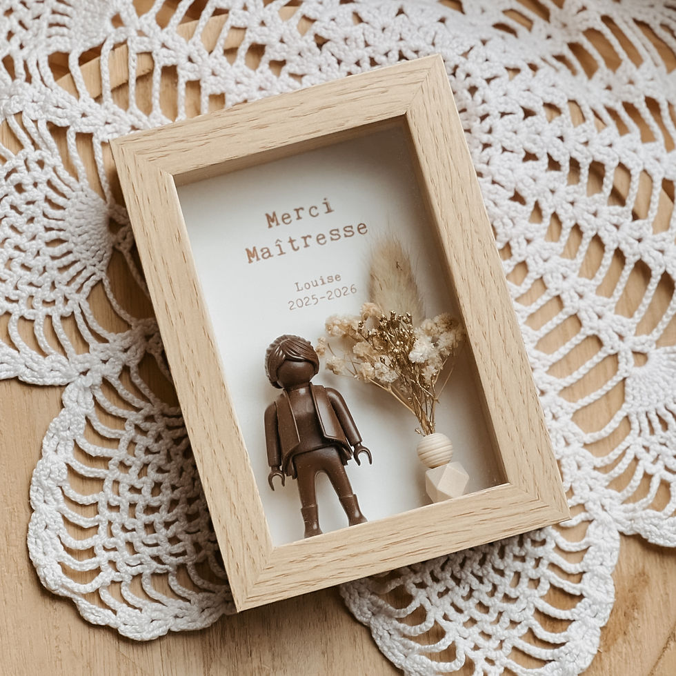 En choisissant une création de l’atelier, vous participez à une démarche responsable. Les figurines utilisées sont issues du marché de la seconde main, leur offrant ainsi une nouvelle vie. Une approche engagée, qui permet de préserver des souvenirs tout en respectant l’environnement.